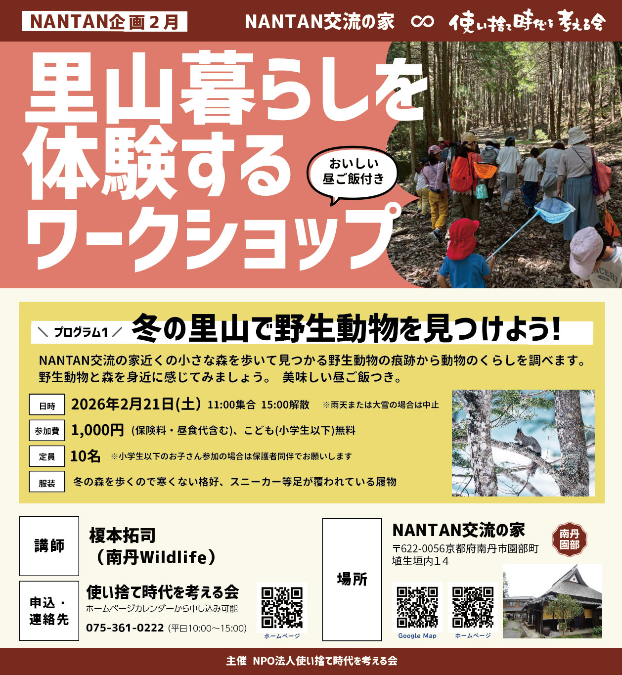 冬の里山で野生動物を見つけよう(2026/2/21)里山暮らしを体験するワークショップ