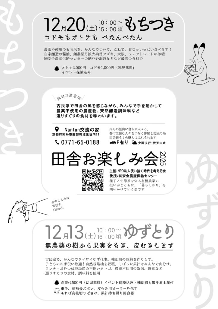 「ゆずとりと、皮むき」「もちつき」共通事項